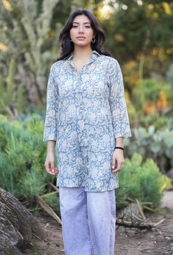 Uma Floral Button Down Shirt Blue (Sea foam)