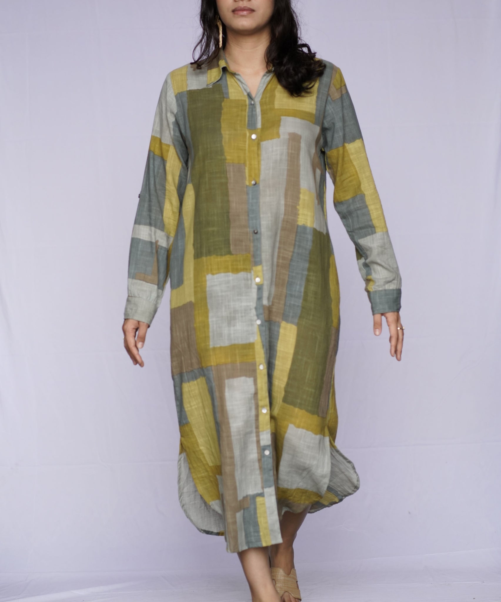 Alessia Geo Dress- This chic textured cotton shirt dress has buttons down the front and has convertible sleeves which can be worn long or rolled up and buttoned for a more casual look. Available in three neutral toned, modern prints this flattering shirt dress offers style and versatility.