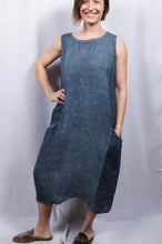 A chic sleeveless linen blend dress with a soft round neck and two pockets. The Anita dress looks great on its own or with the Eisley Duster Jacket to cover your arms and layer.