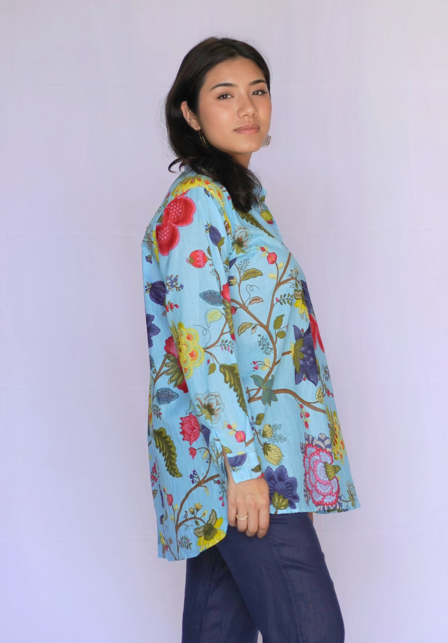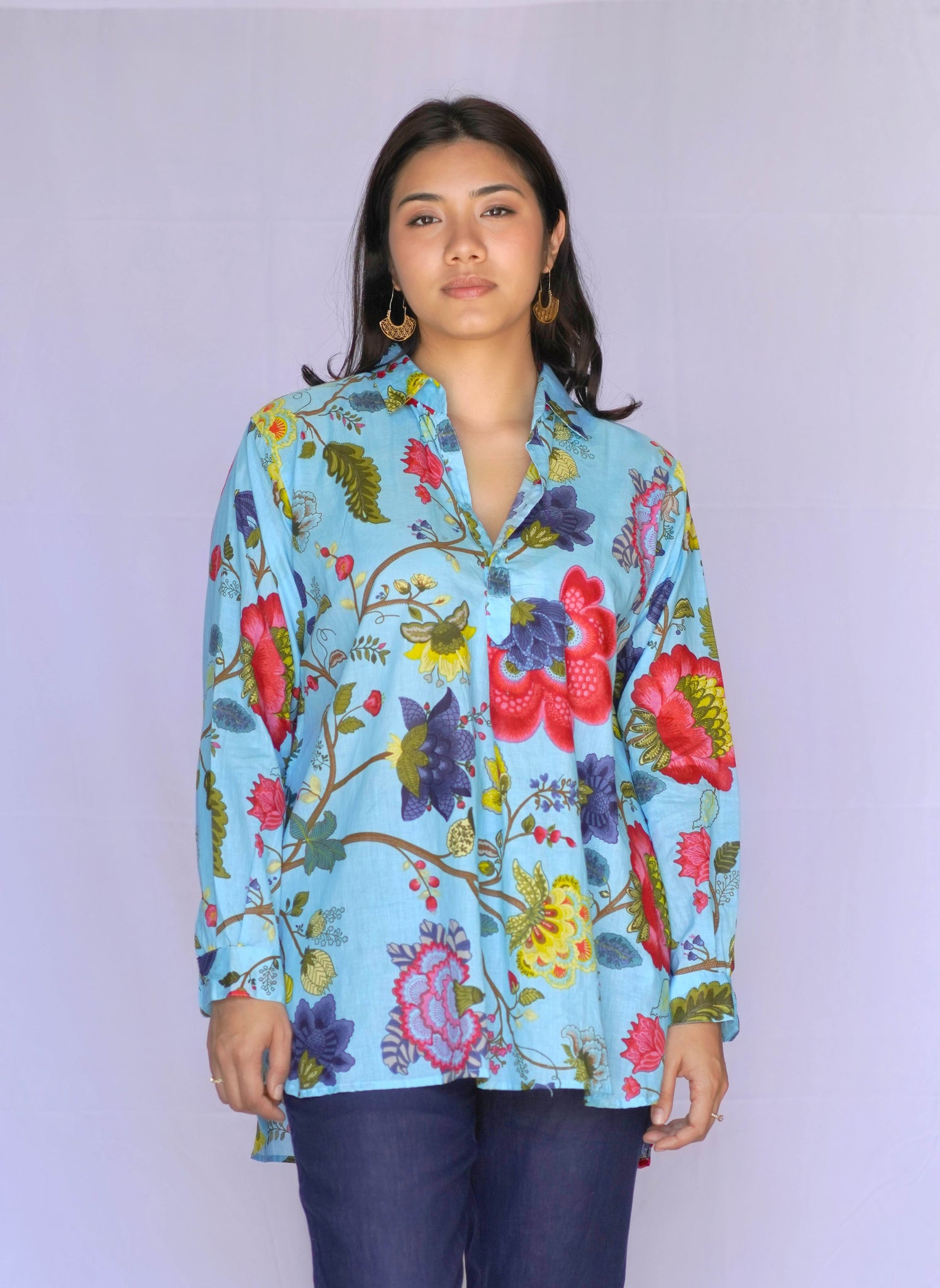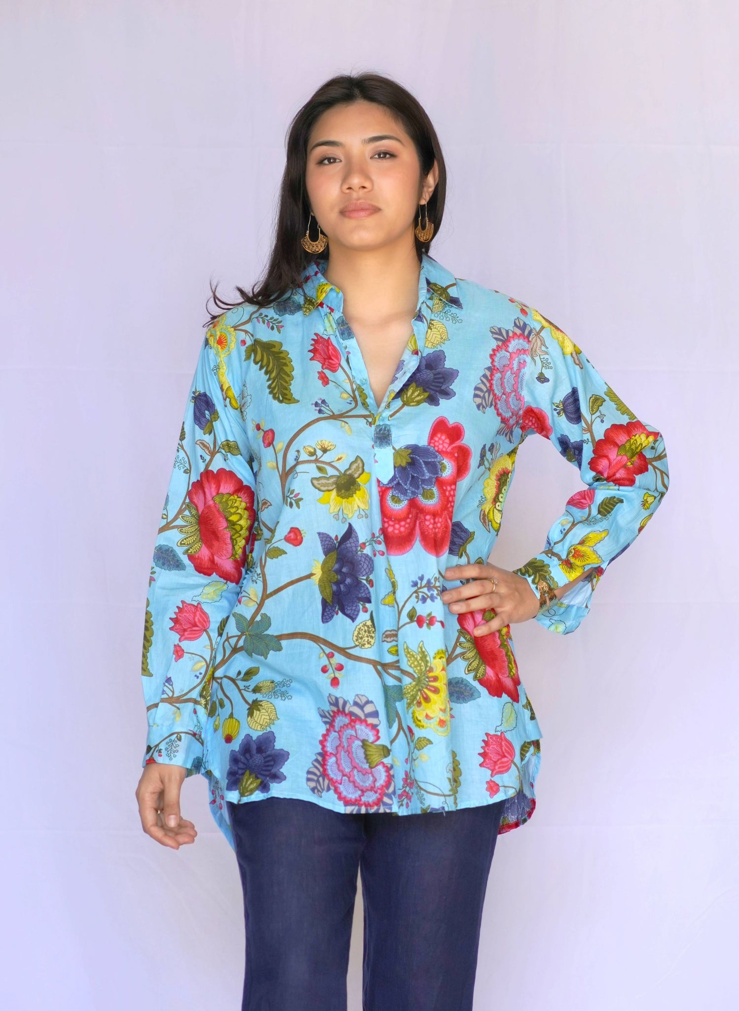 The cheerful Anoushka Top is a breathable and lightweight pullover top/tunic in a bright floral print.