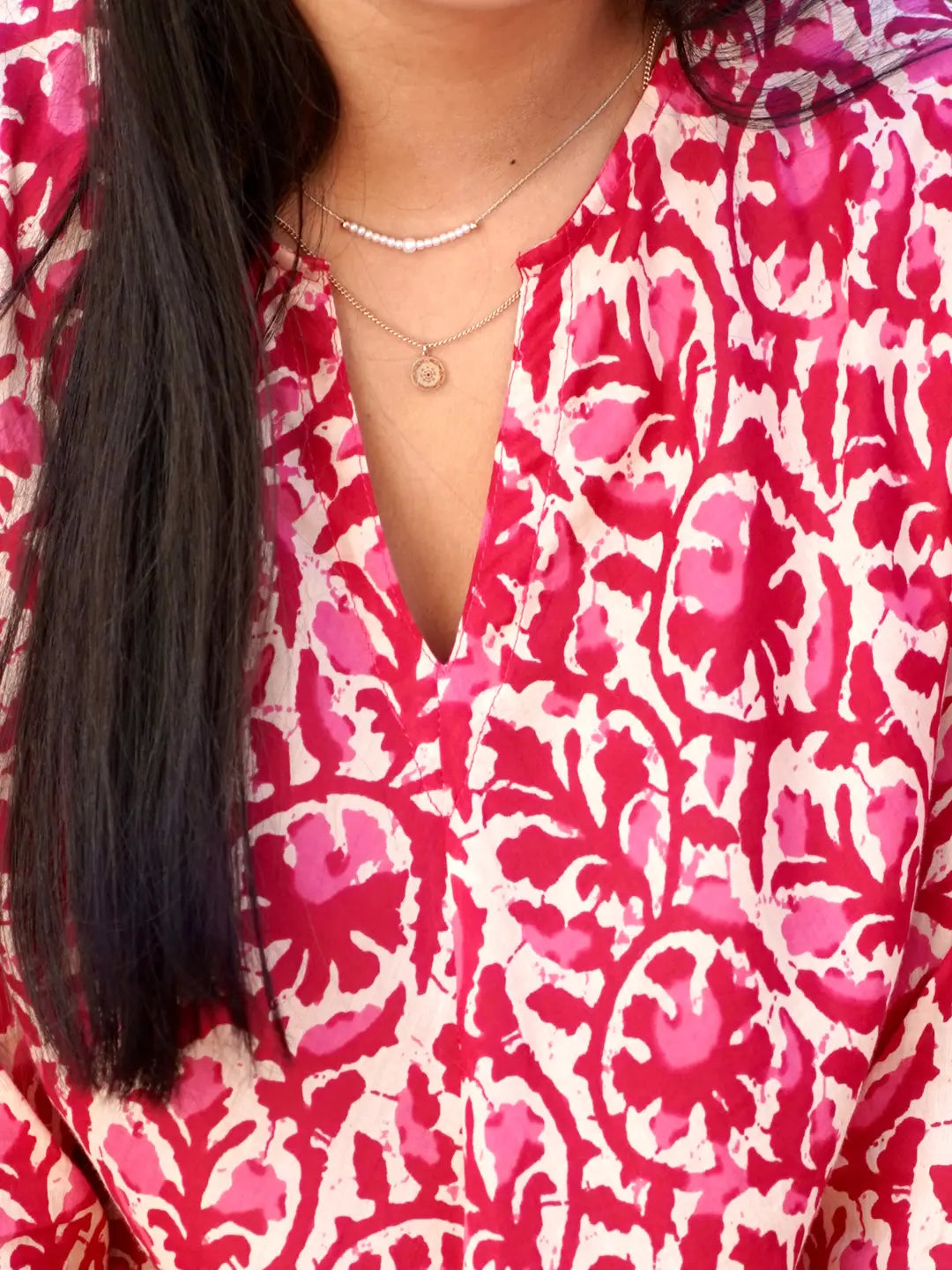 This versatile dress can be worn with a straw hat and sandals for a casual day out, or belted w/ dainty jewelry and strappy sandals for a night out.