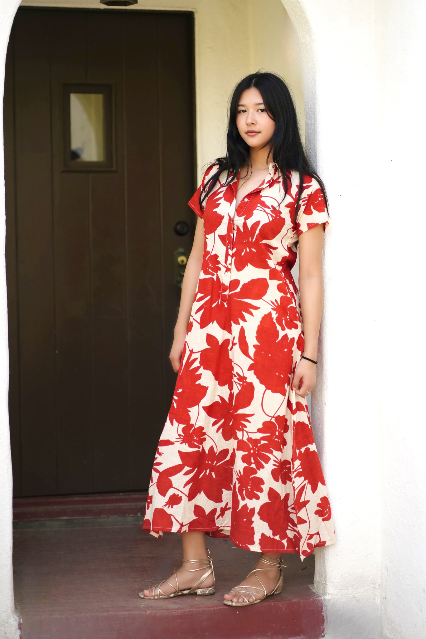 • Load image into Gallery viewer, Carrie Cotton Dress Rust Beige