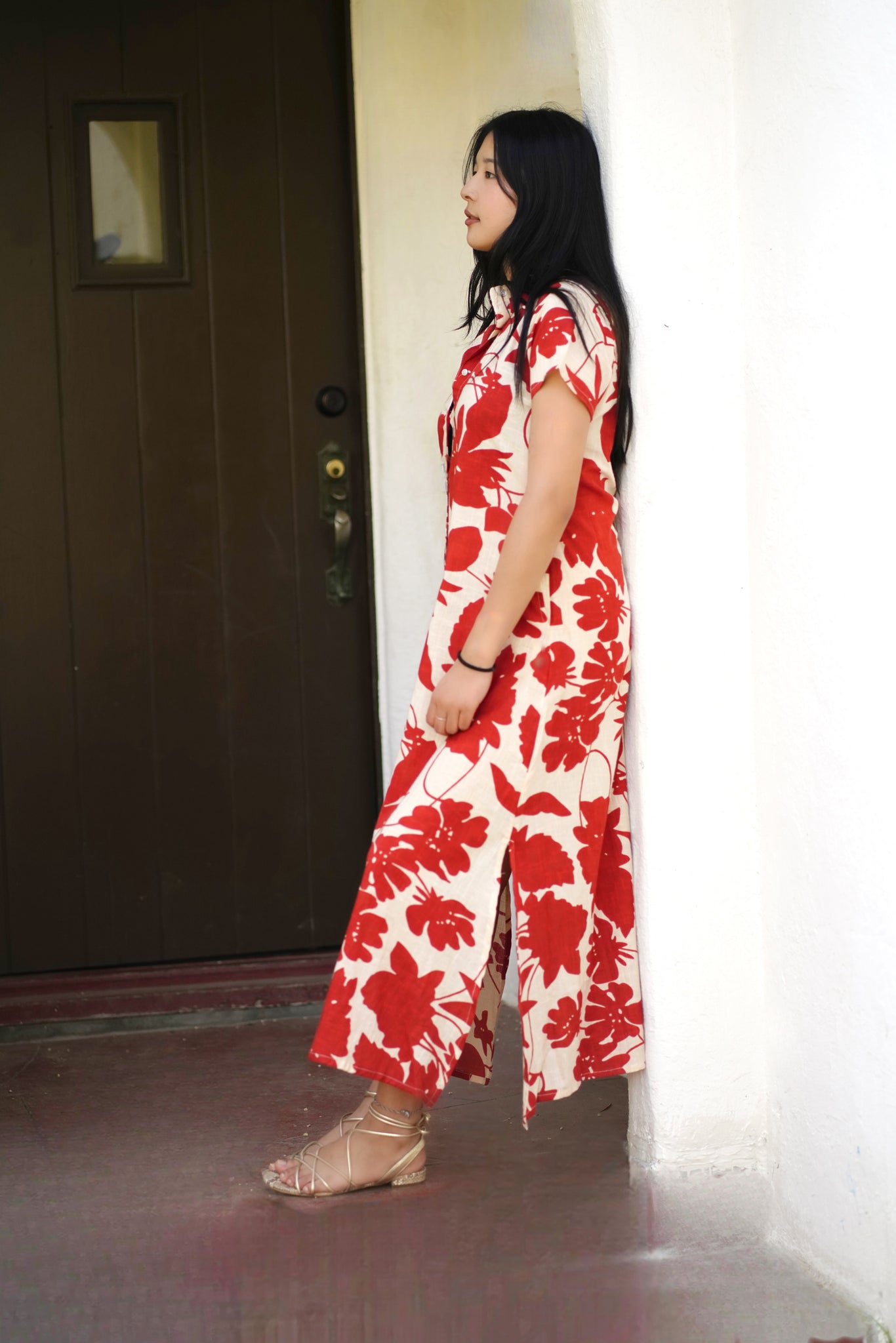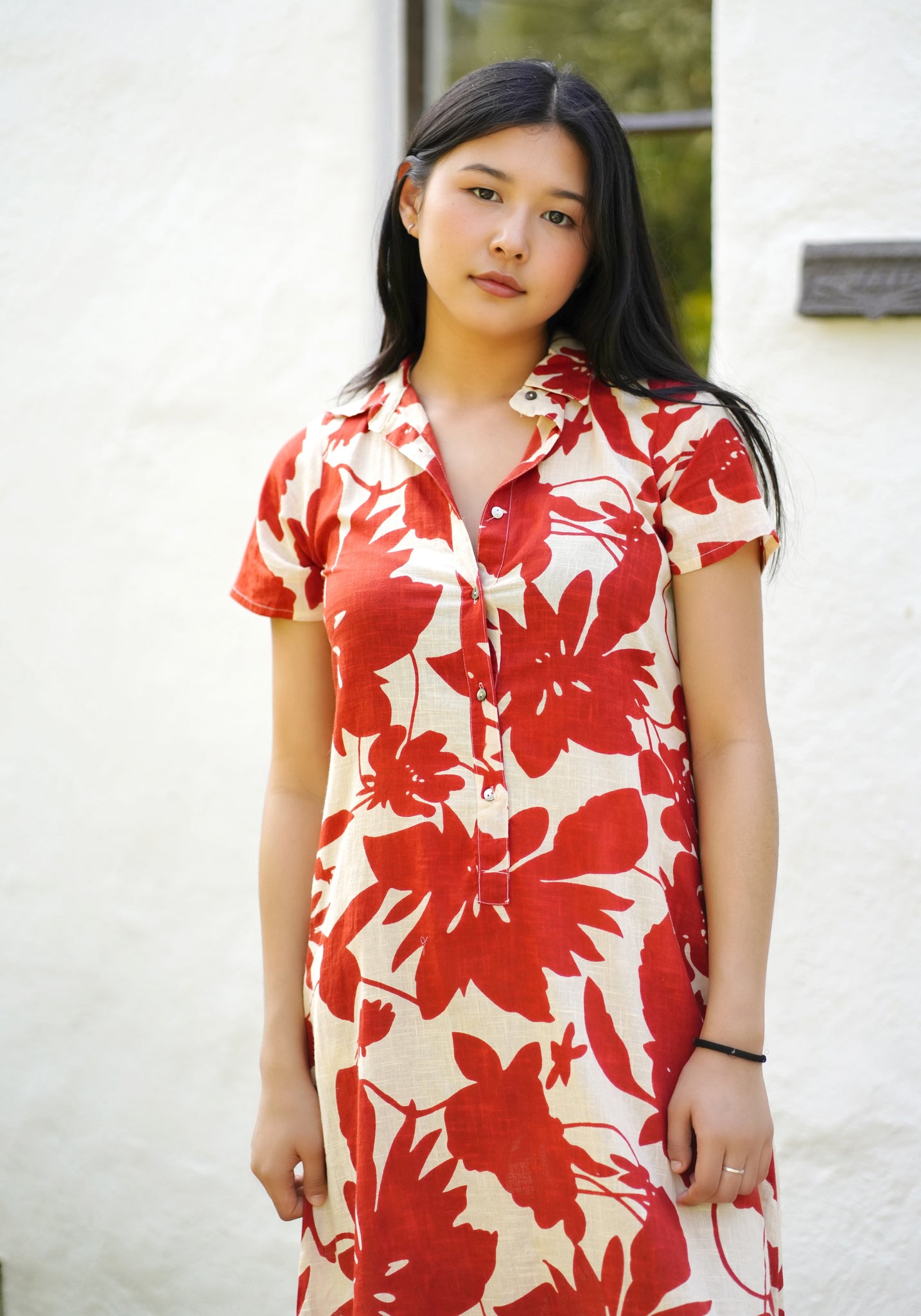 The Carrie Dress is a breathable and lightweight pullover dress in an abstract leaf print.