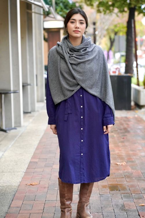 Wrap yourself up in this warm weighty cashmere wrap which drapes beautifully for cool evening strolls, working from home, for travel, or to compliment any evening look. Its substantial plush hand makes for an elegant layer.