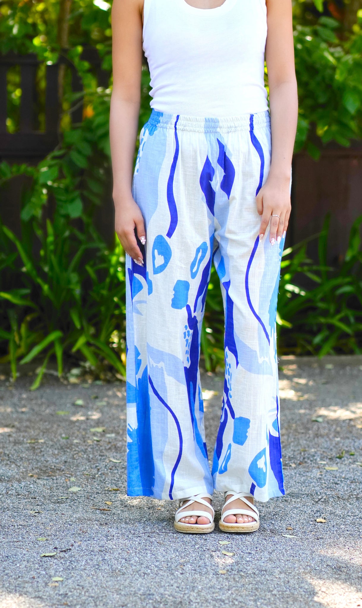 • Load image into Gallery viewer, Erin Abstract Print Pants Blue Multi