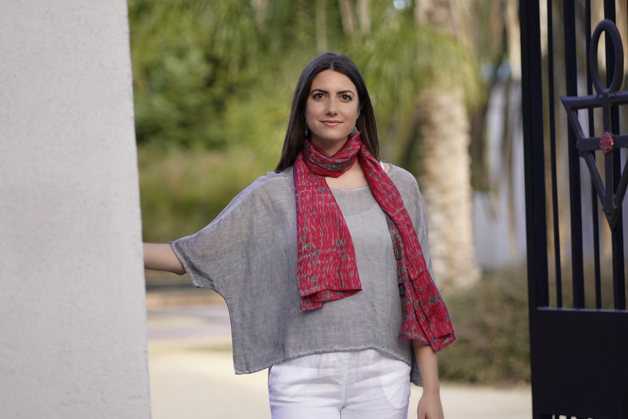 A beautifully hand dyed cotton linen blend pullover top is designed with a loose silhouette and dolman sleeves. Looks great on its own, with the complimentary duster, or tucked into a high waisted pair of jeans.