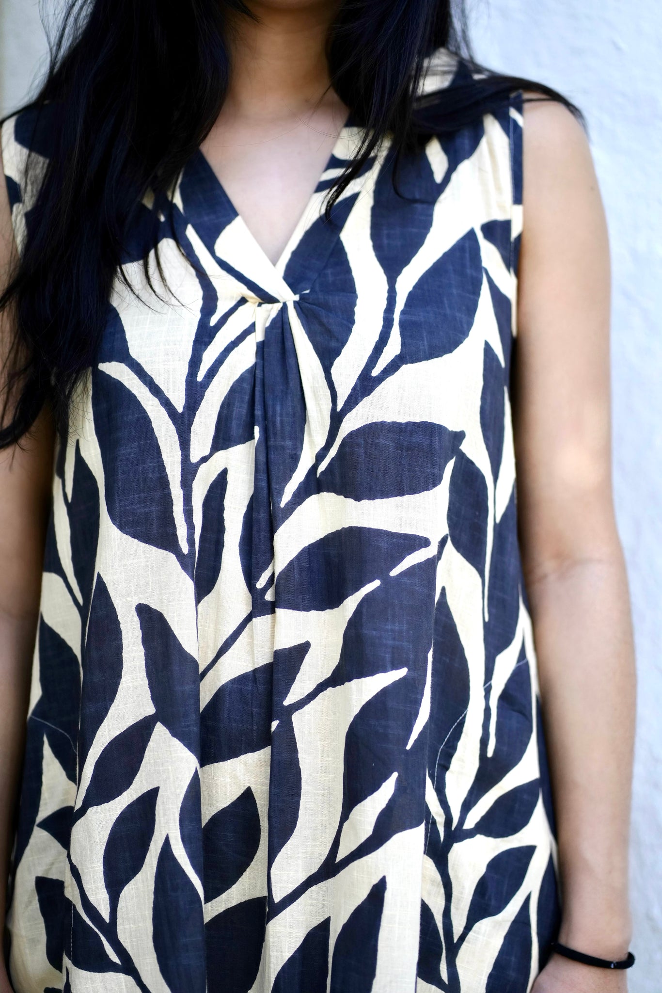The Ingrid Dress is a breathable and lightweight pullover dress in an abstract leaf print.