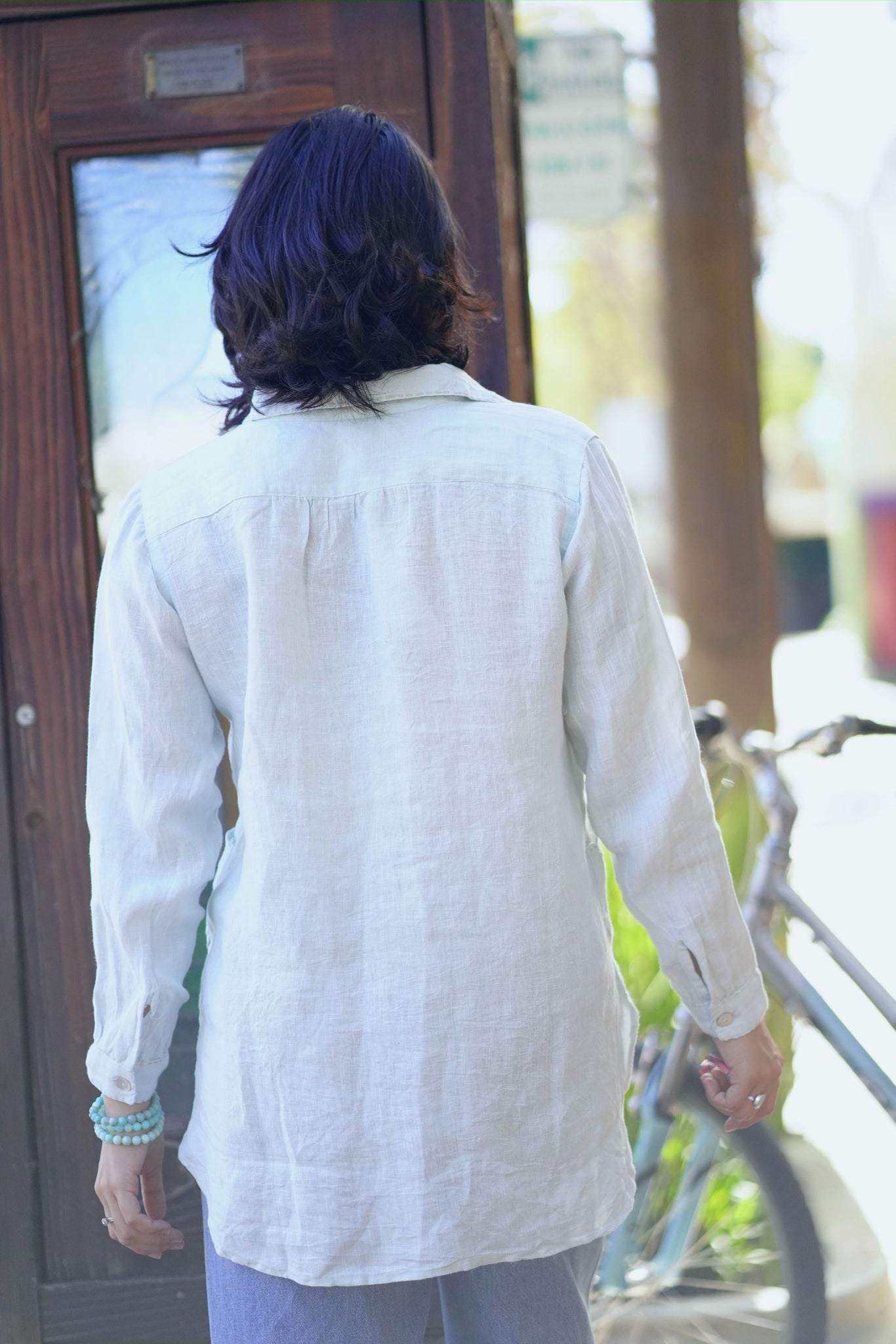 The details are just right; Pockets, long sleeves, collared neck, and subtle embroidered details around the collar and pockets.