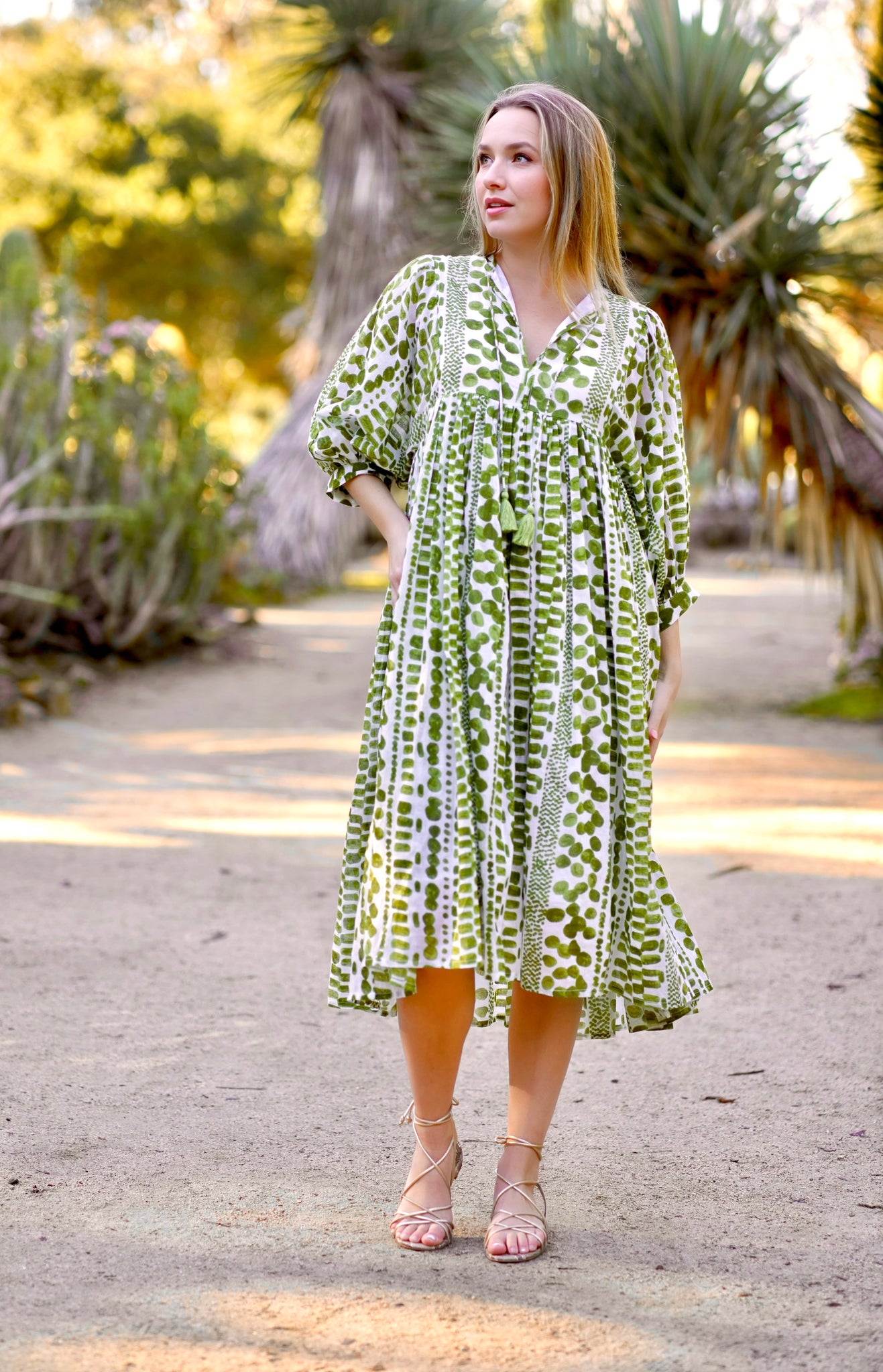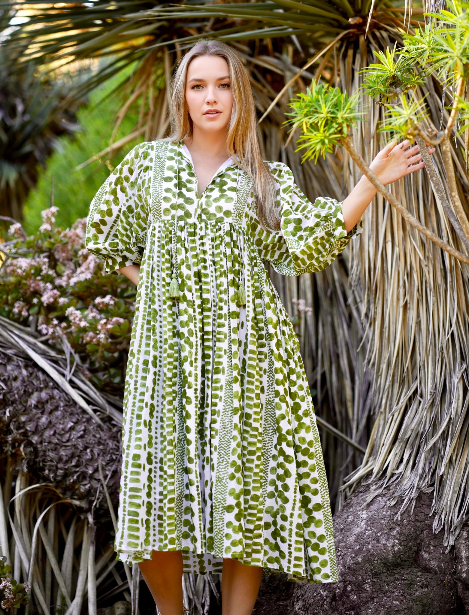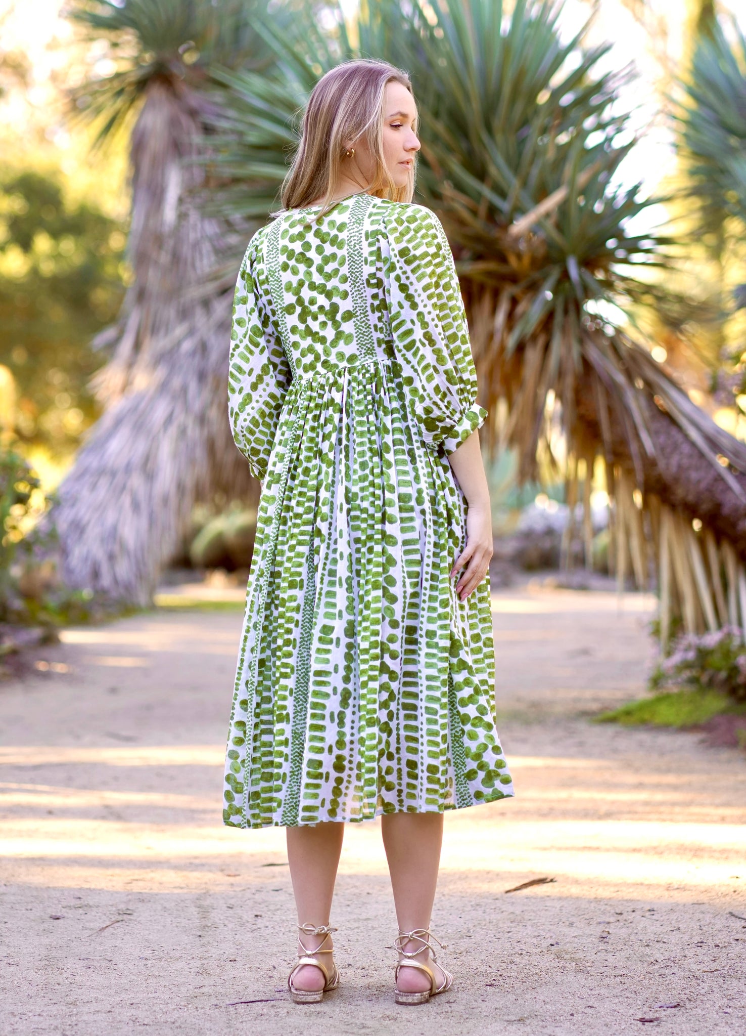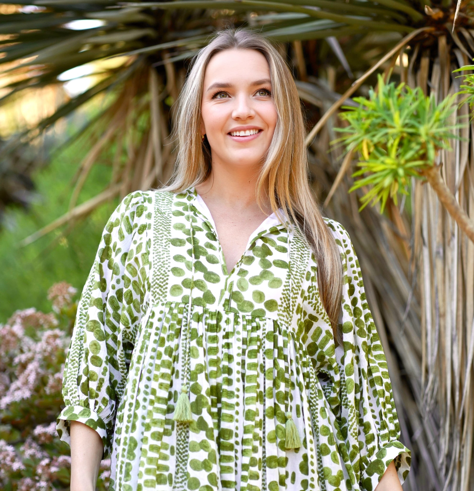 A flowy, soft cotton dress- hand made using the traditional method of hand block printing.