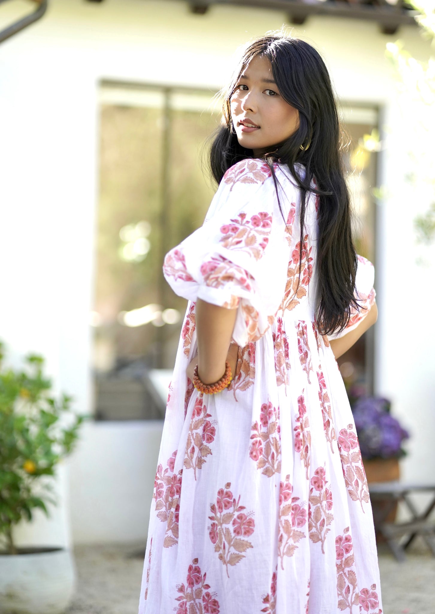 A flowy, soft cotton dress- hand made using the traditional method of hand block printing.