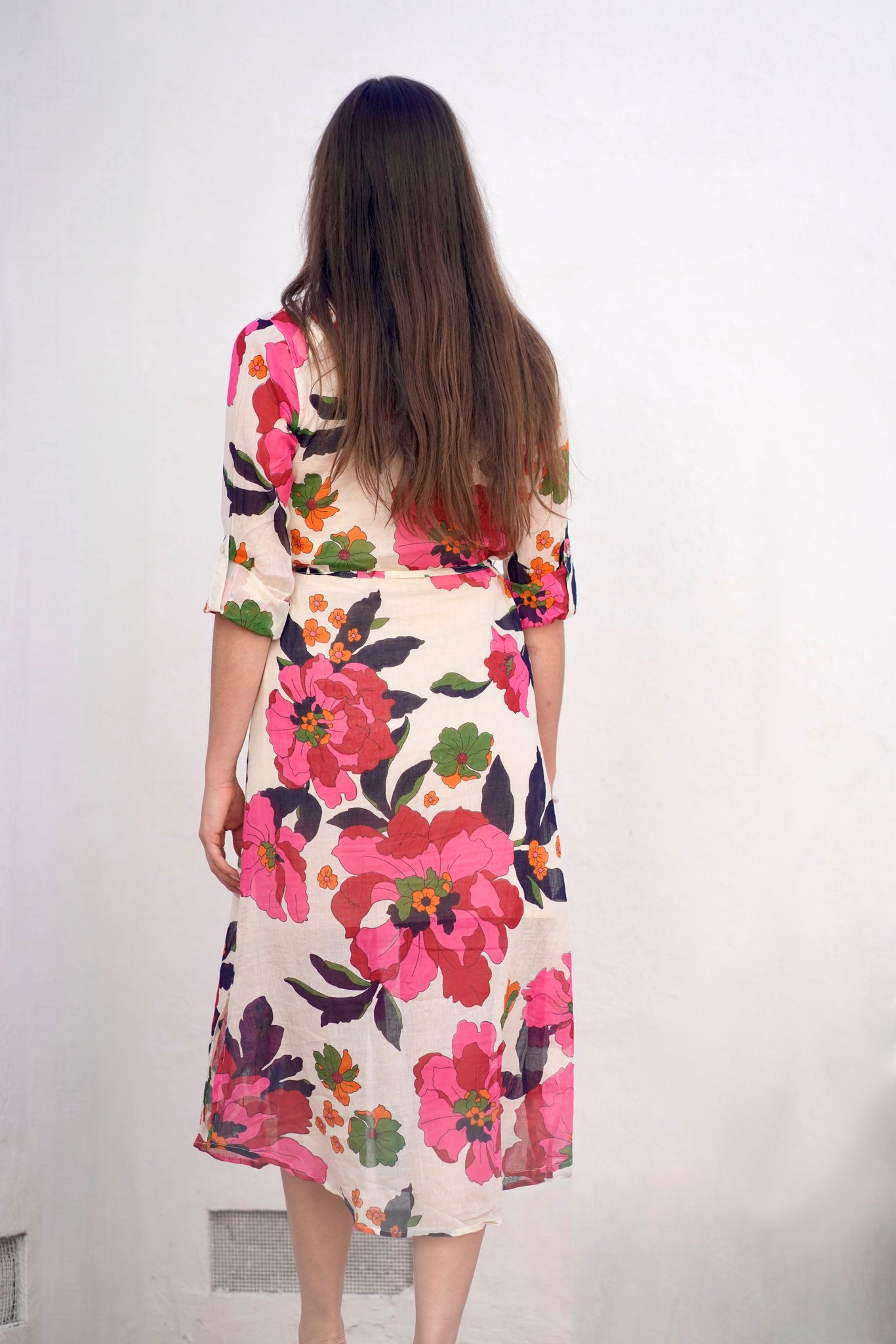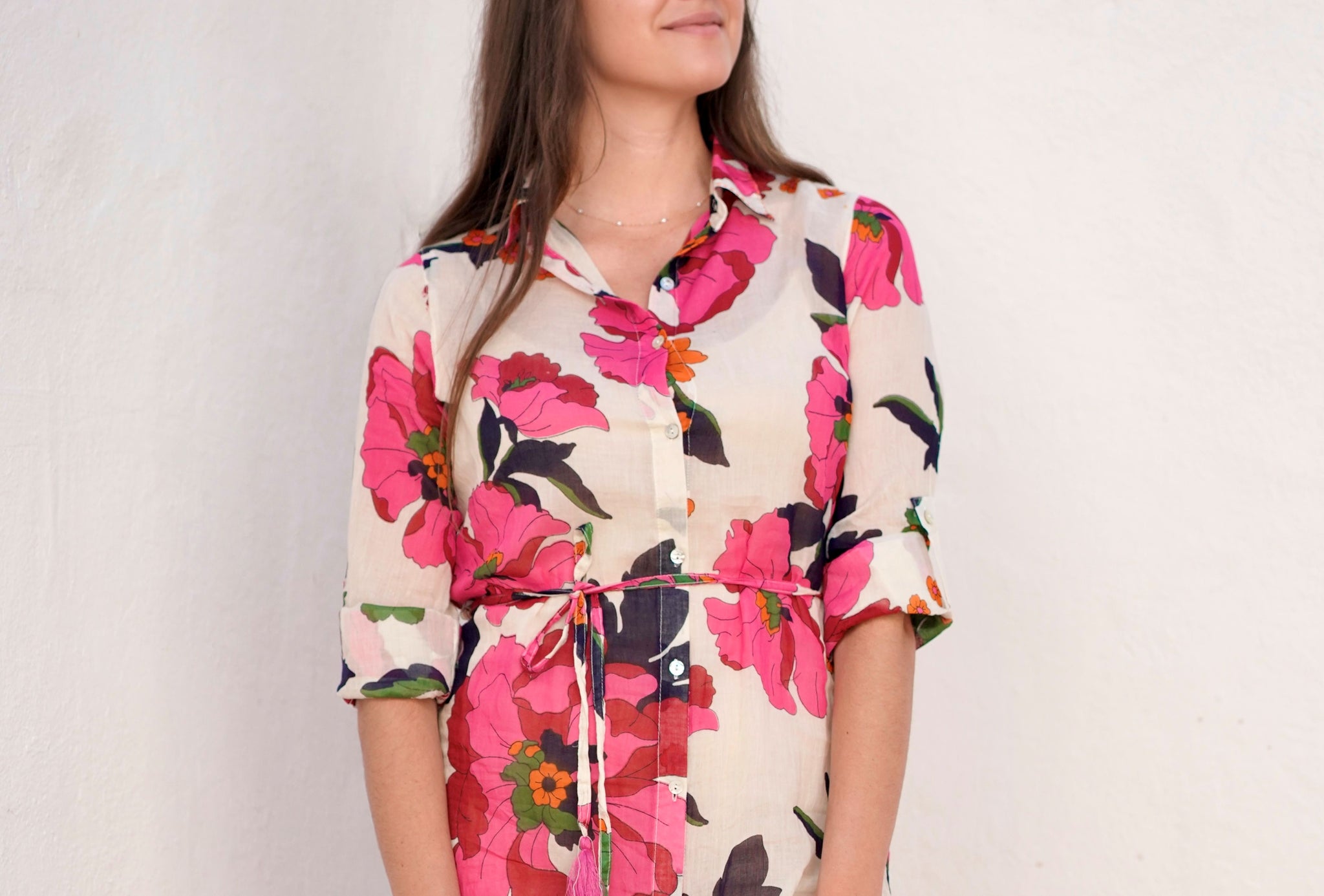The Reine Shirt Dress is a vacation ready with an easy silhouette and a beautiful floral print. Perfect to throw over and go, the Reine Dress features a three- quarter length sleeves and a front button closure.
