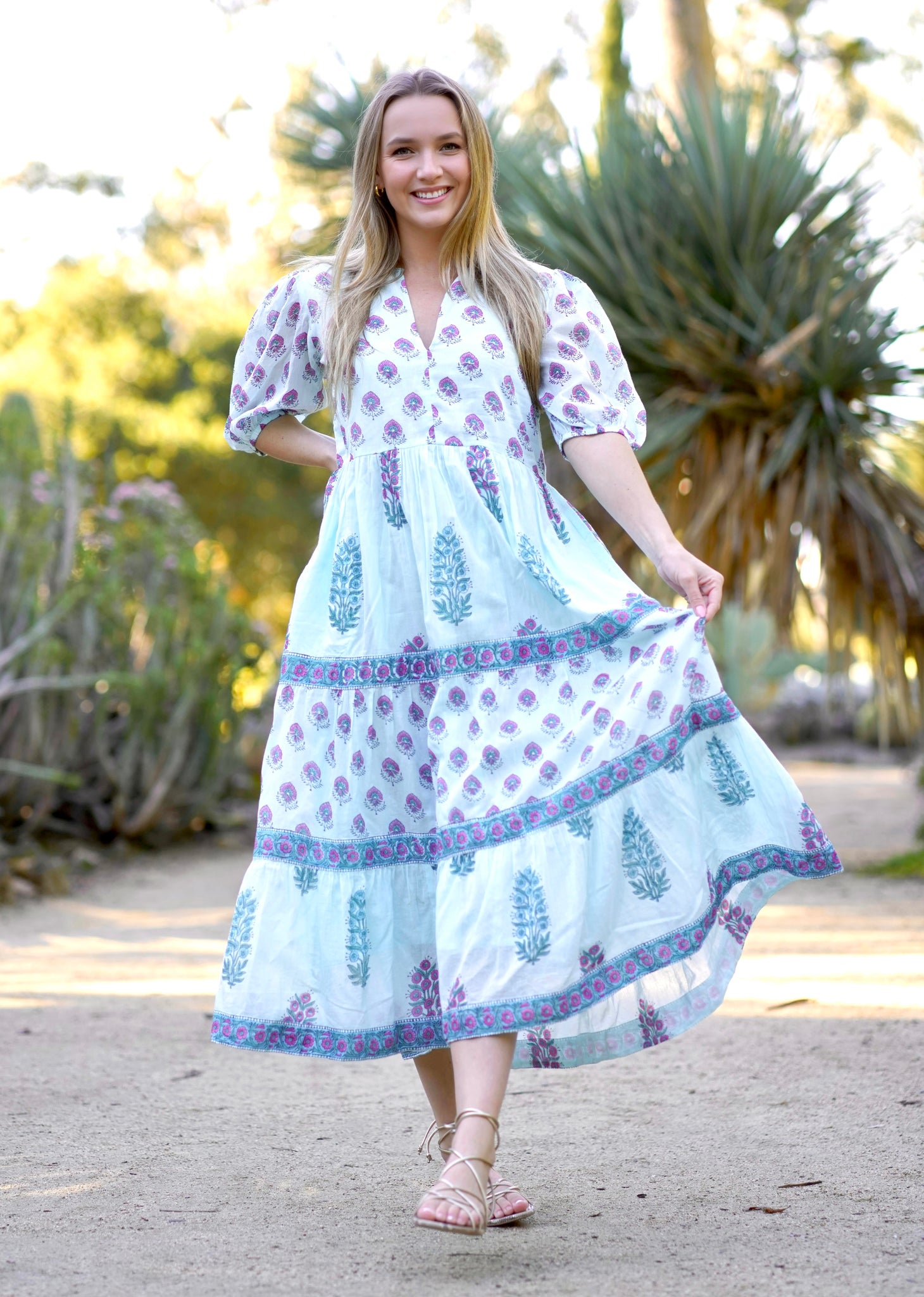 The Remi Maxi Dress has a flowy silhouette with a split neckline and the perfectly puffed sleeves.