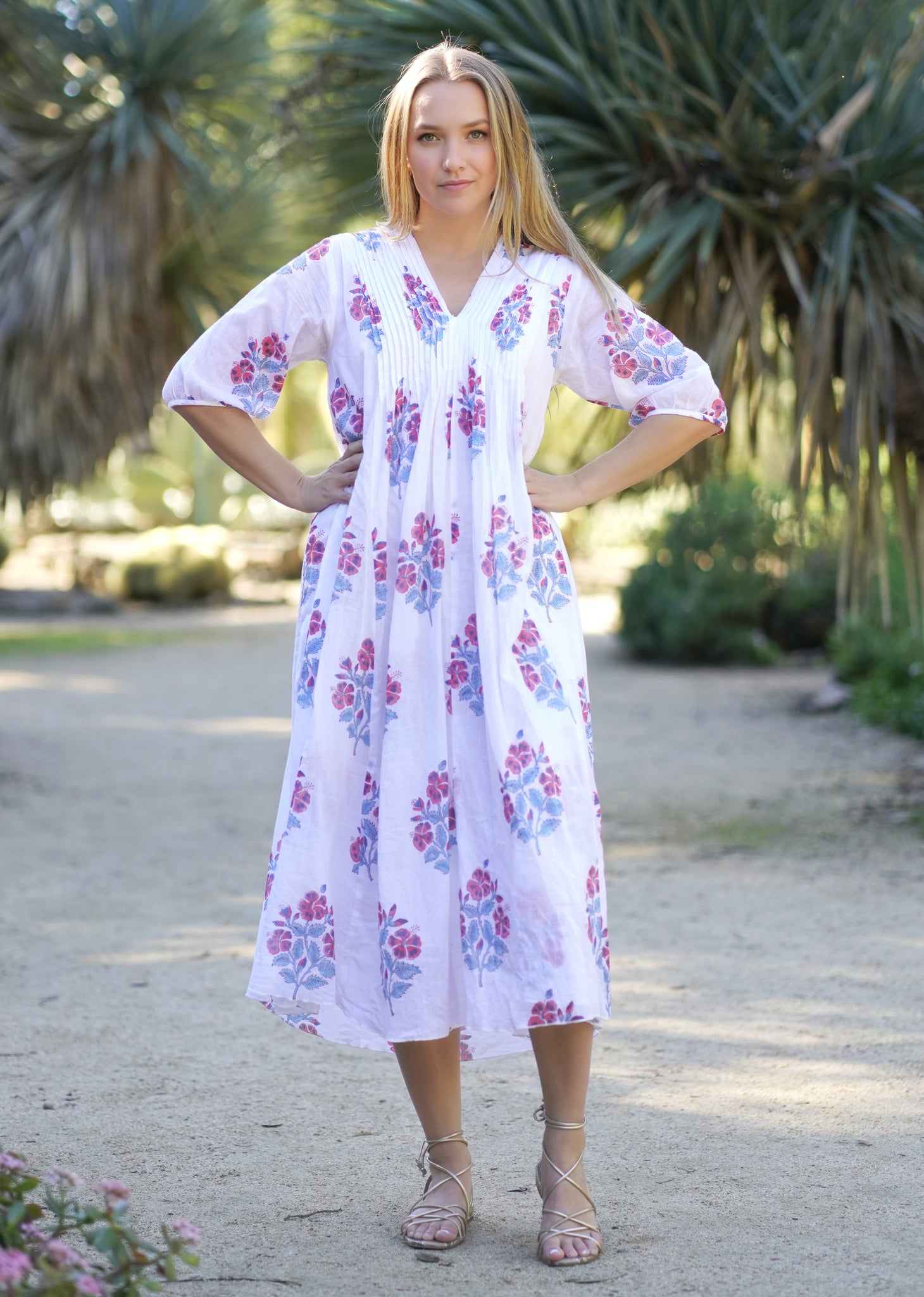 Versatile lightweight cotton dress makes this dress incredibly comfortable; it features pockets and pin-tucking at the neckline with a flattering a-line silhouette.